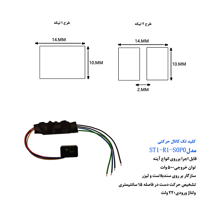 کلید یا سنسور حرکتی یکی از بهترین سنسورهای رایج درمحصولات تکین الکترونیک میباشد که با حرکت دست در جلوی سنسورمیتوانید یک منبع نوری مثل لامپ یا ریسه را روشن نمایید.کاربرد این کلید در تمام حوزهای دکوراسیون و نور پردازی مورد استفاده قرار میگیرد.یکی از کاربردهای بسیار جذاب پر مصرف این کلید ها در پشت آینه های هوشمند میباشد..برای اینکار می بایست محل تشخیص حرکت دست را در پشت آینه لیزر یا سندبلاست نمایید.توجه نمایید این کلید فقط در آینه هایی با قطر 4 میل مورد استفاده میباشد.